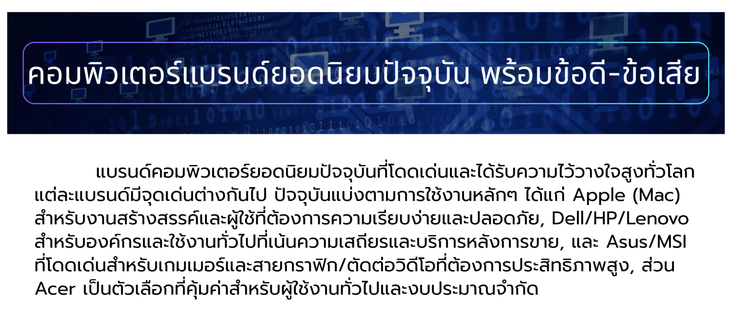 คอมพิวเตอร์แบรนด์ยอดนิยมปัจจุบัน พร้อมข้อดี-ข้อเสีย