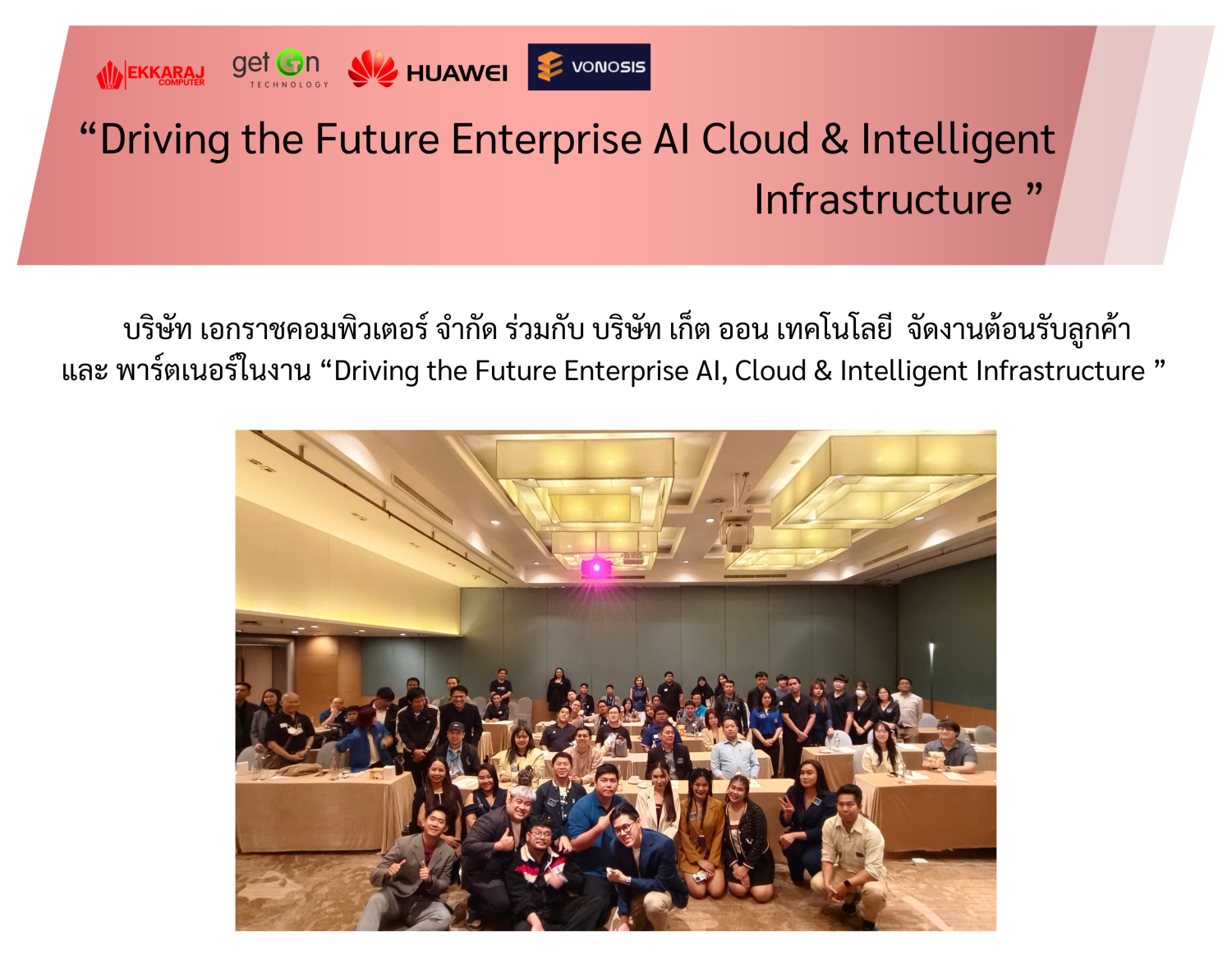 บริษัท เอกราชคอมพิวเตอร์ จำกัด ร่วมกับ บริษัท เก็ต ออน เทคโนโลยี จัดงานต้อนรับลูกค้าและพาร์ตเนอร์ในงาน “Driving the Future Enterprise AI, Cloud & Intelligent Infrastructure ”