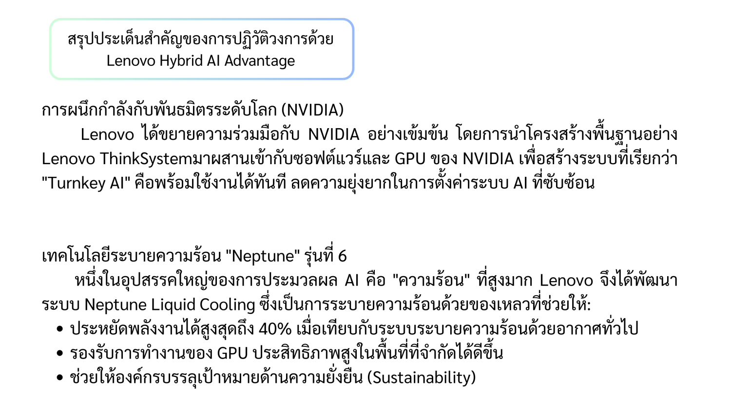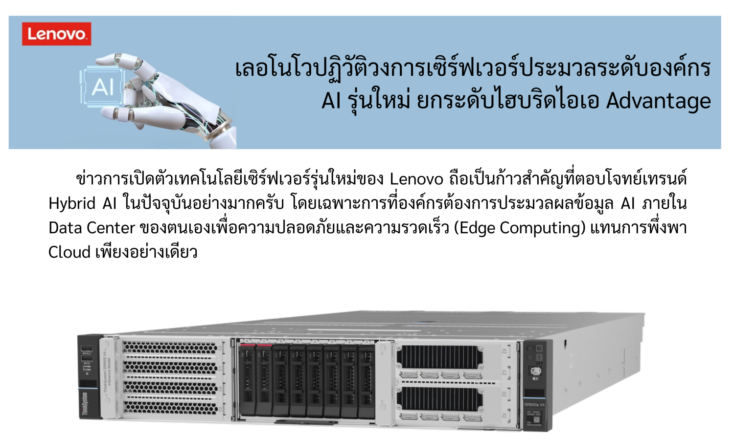 เลอโนโวปฏิวัติวงการเซิร์ฟเวอร์ประมวลระดับองค์กร AI รุ่นใหม่ ยกระดับไฮบริดไอเอ Advantage